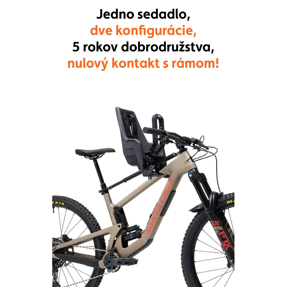 Introducing Pro EVO - the world's first 2-in-1 child bike seat designed specifically for mountain bikes. It transforms from a bike seat for children aged 9-24 months (children 9-15 kg) to a professional PRO seat for children aged 2-5 years (children 12-27 kg). One seat, two settings, four years of adventure.