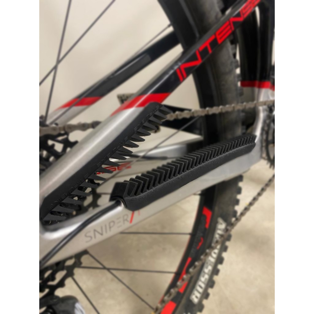 The Stay Guard is a low-profile replacement protector that utilizes a very soft silicone rubber with a tapered rib design to absorb impact forces and associated noise. It works great on its own or paired with our shock absorbers for the ultimate in quiet riding!