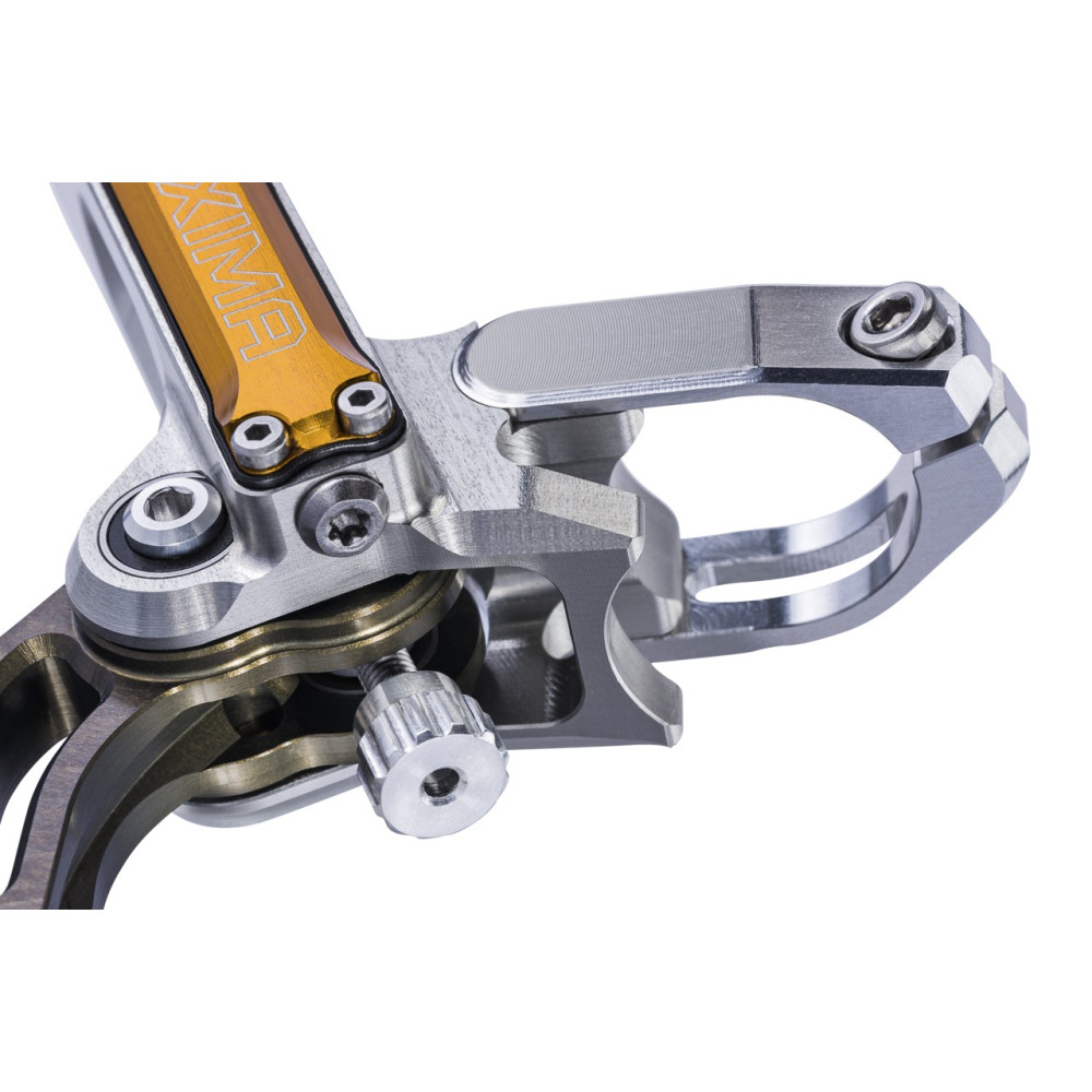 Trickstuff MAXIMA is a hydraulic four-piston disc brake made of 7075 T6 aircraft alloy, based on the Direttissima model.
