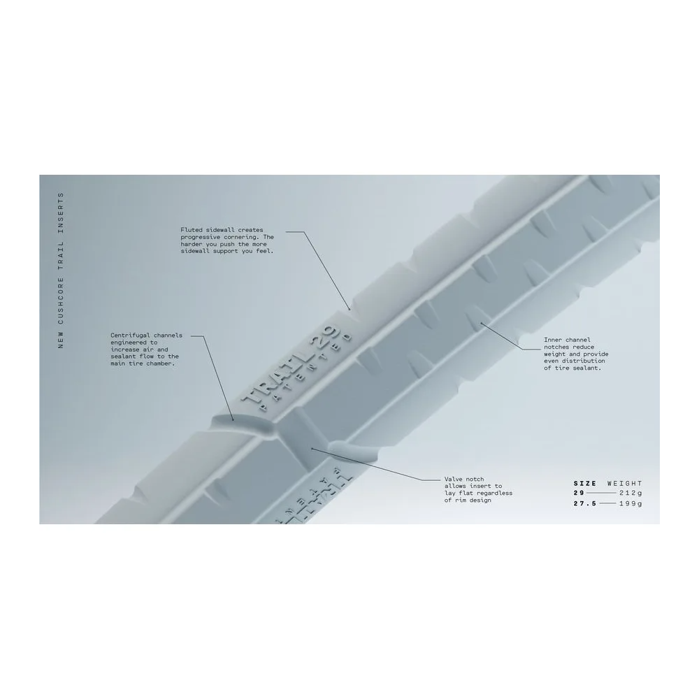 Like all CushCore tire liners, TRAIL absorbs shock and vibration, improves cornering and prevents rim damage... giving you complete confidence that you'll be riding at your best.
