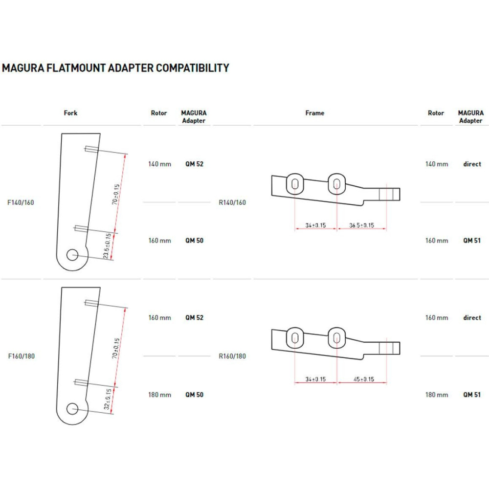 QM 50 Flatmount adapter front wheel F140/160 mm
