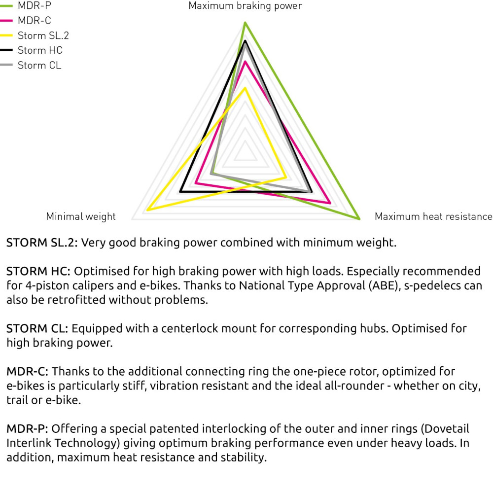 Brzdový kotúč Magura MDR-C je najnovší model určený najmä pre E-Bikes, Tandemové bicykle alebo ťažších jazdcov. Vynikajúca teplotná a vibračná odolnosť.