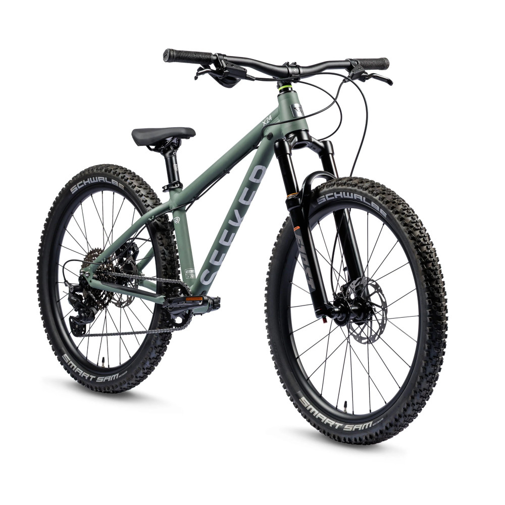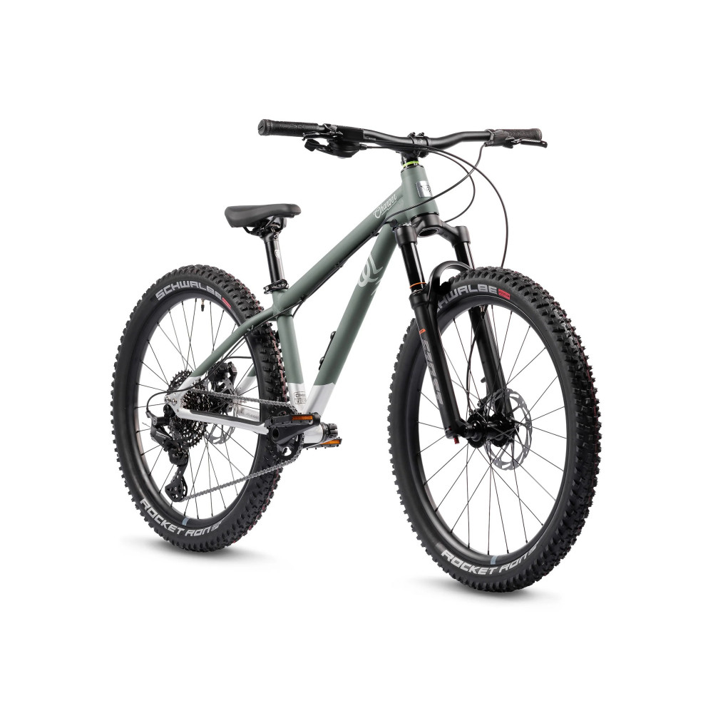 2026 UPDATE modelovej rady CHARGER 24 - je 24-palcový hardtail pripravený na traily, vyrobený pre mladých nadšencov, ktorí to s horskou cyklistikou myslia vážne. S 120 mm vzduchovou vidlicou RST, ľahkým, ale odolným rámom a geometriou zameranou na traily poskytuje CHARGER kontrolu a istotu potrebnú na zvládnutie technického terénu. 10-rýchlostný pohon Shimano CUES zaisťuje plynulé a spoľahlivé radenie v rôznych sklonoch, zatiaľ čo výkonné hydraulické kotúčové brzdy Tektro ponúkajú spoľahlivú brzdnú silu za všetkých podmienok. Priemyseľné ložiskové kolesá a široké 2,35" pneumatiky zaisťujú priľnavosť a stabilitu na voľnom alebo nerovnom teréne. Kľuky s 130 mm dĺžkou zvyšujú efektivitu šliapania pre rastúce nohy. CHARGER, navrhnutý tak, aby rástol spolu s jazdcom, je pripravený na skutočné dobrodružstvá, je dokonalým bicyklom pre deti, ktoré sú pripravené zdolať náročné terény.