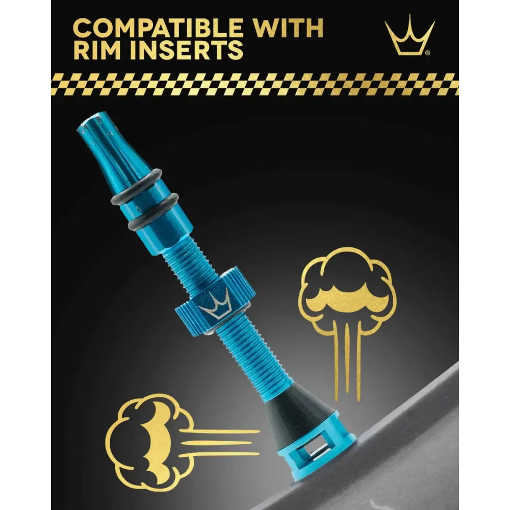 Bezdušové ventily Peaty's Holeshot Fast Flow sú navrhnuté pre maximálny prietok vzduchu a čo najjednoduchšiu montáž bezdušových plášťov. Vďaka špecifickej konštrukcii je ventilový mechanizmus umiestnený vo vnútri ráfika, čo umožňuje rýchly priechod vzduchu aj tmelu priamo do plášťa, uľahčuje jeho usadenie a znižuje nároky na údržbu. Ventily sú vzduchotesné, bezpečné a poskytujú presné, mikro-nastaviteľné ovládanie tlaku bez nutnosti demontáže čiapky. Plne servisovateľná konštrukcia bez jednorazových dielov predlžuje životnosť produktu a vďaka použitiu kvalitných materiálov sú ventily vhodné na intenzívne používanie v teréne aj na cestách.