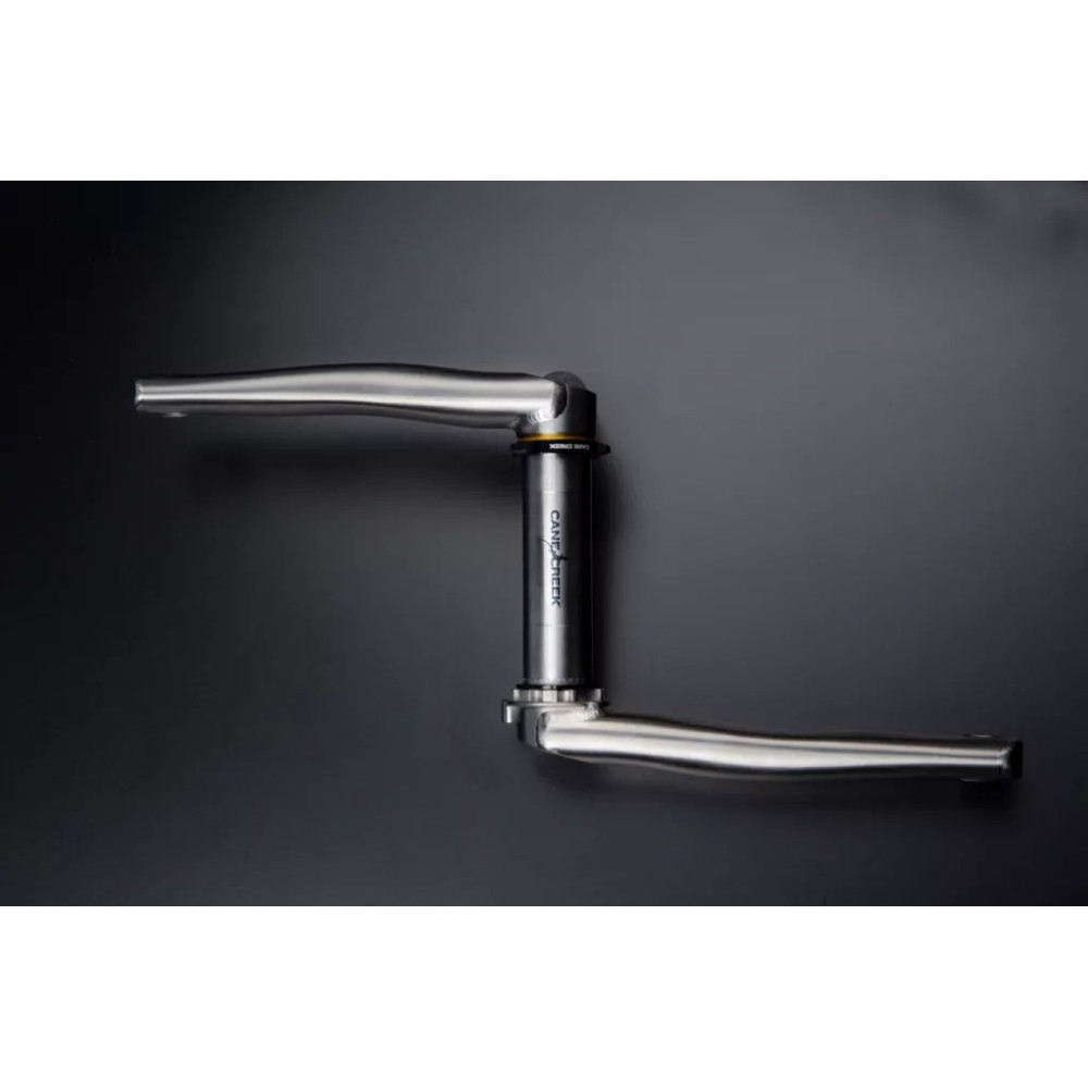 - Materiál: Titánové kľuky Grade 9 Ti-3Al-2.5V a titánová oska Grade 5 Ti-6Al-4V, duralové nastavovacie skrutky Cane Creek CNC 7075 T-6 Aluminum