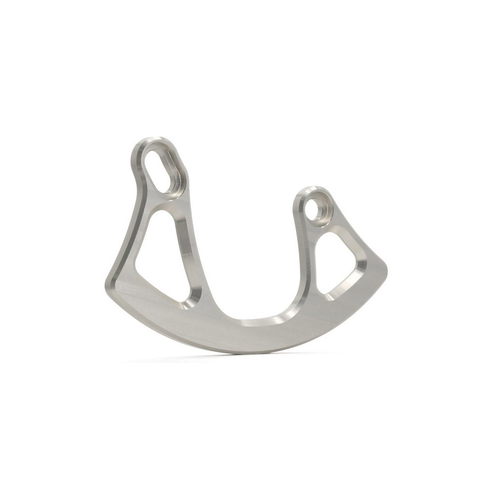 The V2 of our legendary 77designz CRASH PLATE is milled from extremely tough 7075 T6 aluminum. It protects your chainring (round or oval) from impact damage (For Oval, get 2 Teeth bigger). We offer 4 sizes and eight colors for minimal overlap and max style. Compared to the V1, we have optimized the contact orientation; the new slotted hole means the Taco now also fits Santa Cruz carbon frames. Disassembling the crank is unnecessary to install the Crash Plate, which means assembly is effortless and quick. The minimal overlap of the Taco Bashguard offers the best protection for your chainring while maintaining maximal ground clearance. The Crash Plate can be combined with our ISCG 05 chain guides - all you need is the connector.