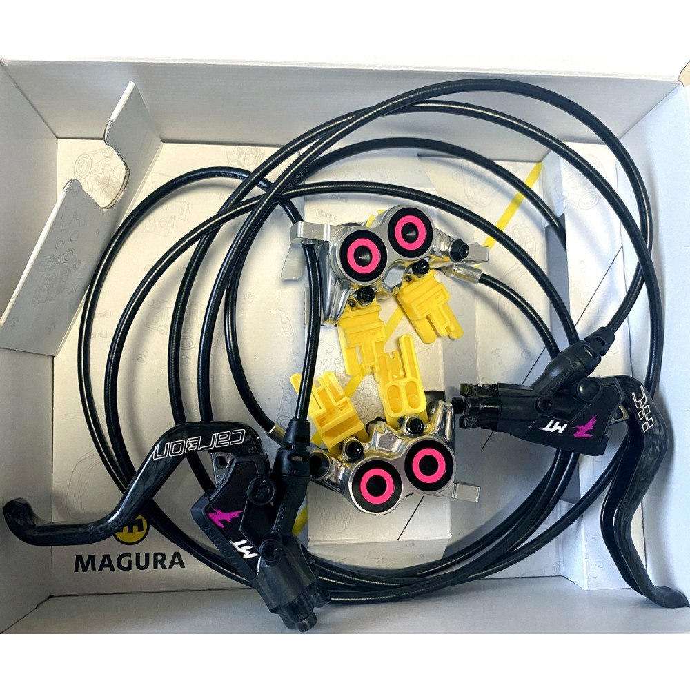 Magura MT7 je kotúčová hydraulická štvorpiestiková brzda s hliníkovou brzdovou páčkou CARBOLAY na jeden prst uložená v tele z kompozitového materiálu Carbotecture® SL. Strmeň vyrobený z jedného kovaného kusu hliníka!