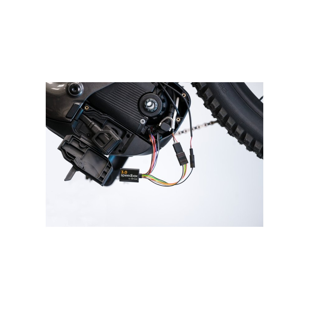 Novinka SpeedBox 3.1 B.Tuning pro Brose přináší jedinečné spojení elektrokola s mobilním telefonem. Produkt je do posledního detailu optimalizovaný pro výkon a maximální požitek z jízdy. Zařízení deaktivuje rychlostní limit elektrokola a ty si můžeš vychutnávat jízdu neomezenou rychlostí. Díky mobilní aplikaci SpeedBox App můžeš sledovat a zaznamenat všechny parametry jízdy na displeji svého telefonu. Kdykoliv a kdekoliv.