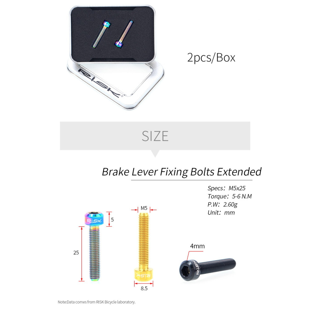 Výrobca RISK patrí medzi najväčších výrobcov Titánového spojovacieho materiálu zameraného špeciálne na potreby cyklistiky s takmer 10 ročným vlastným vývojom a testovaním. Overená a obľúbená voľba celosvetovej MTB komunity v dostupných cenách.